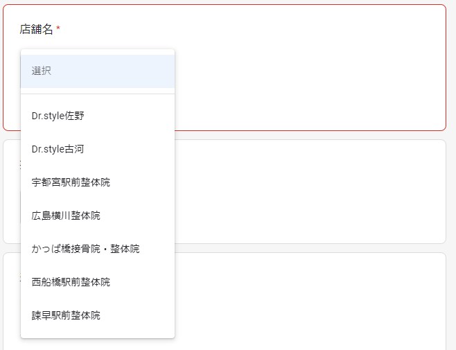 ドロップダウンリストより該当の店舗を「選択入力」してください。