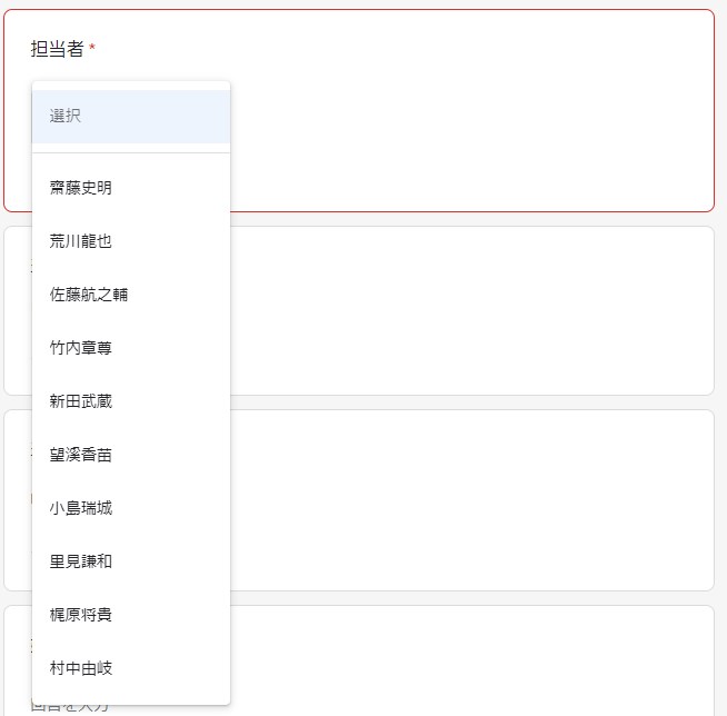 ドロップダウンリストより該当の担当者を「選択入力」してください。