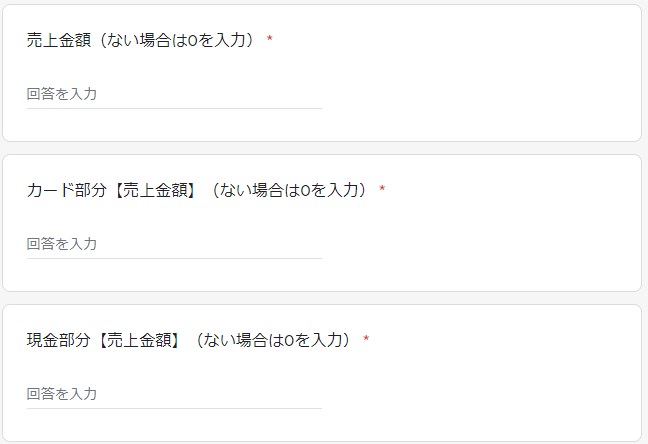 売上金額は「半角数字」にて「手動入力」してください。ない場合は「0」を入力してください。