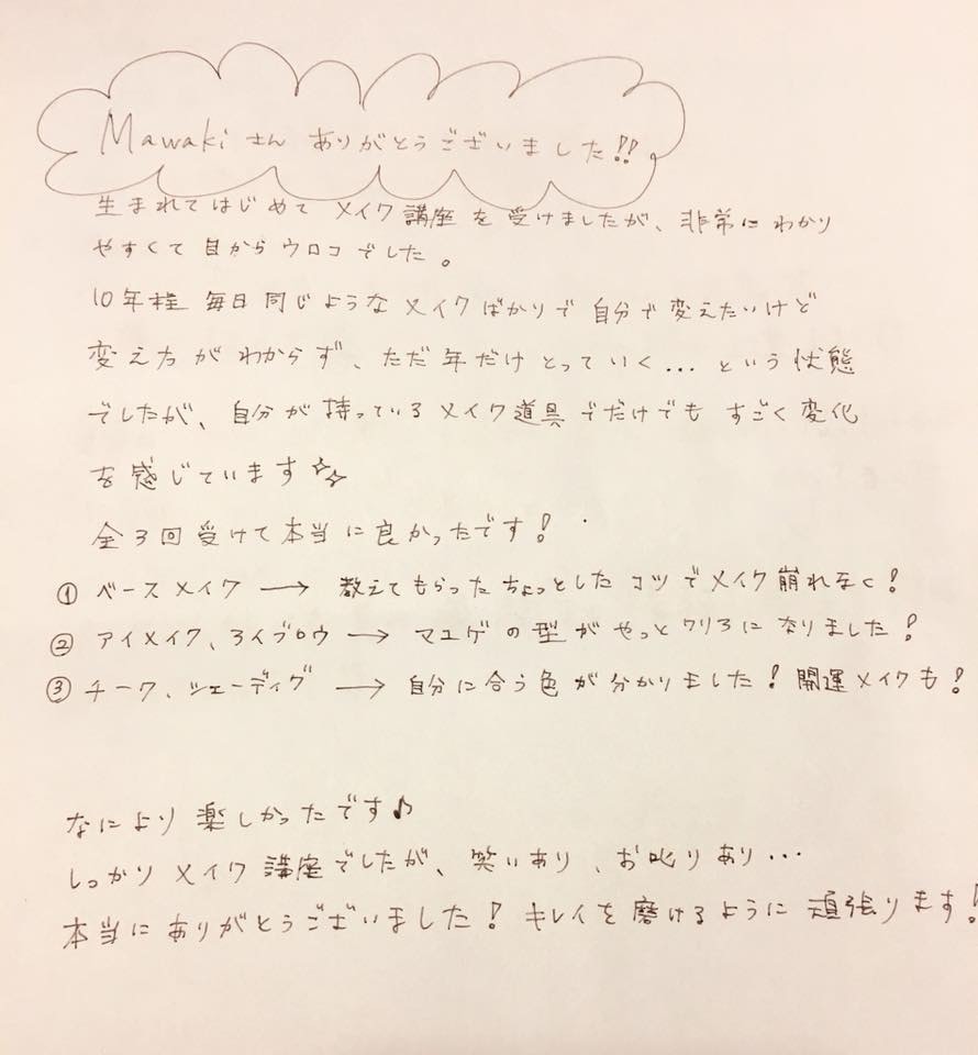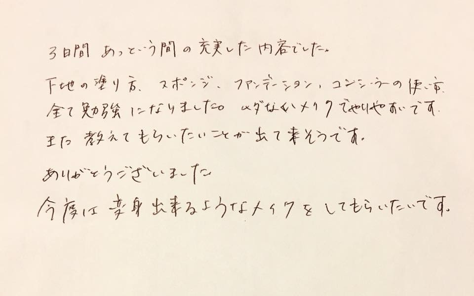丁寧に教えて頂けて、自分のメイクの腕が上達しました!