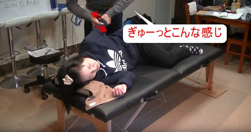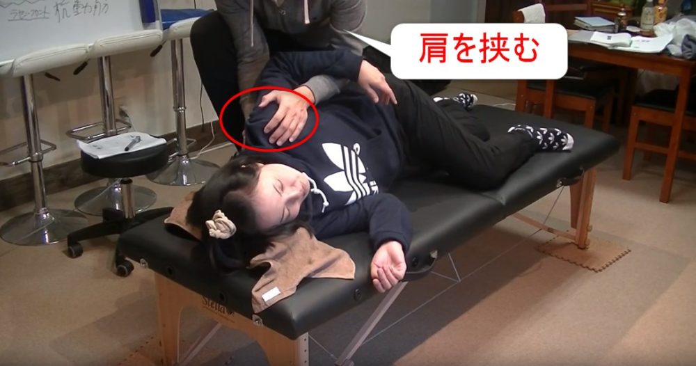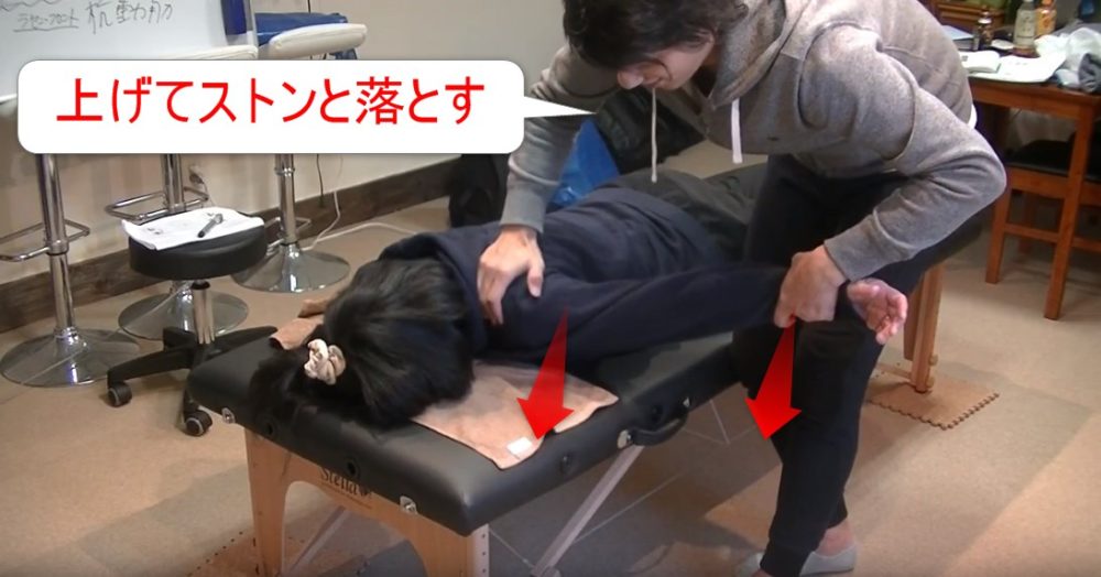 肩をちょっと掴んで、やり方は上げて、ストンと落とす。