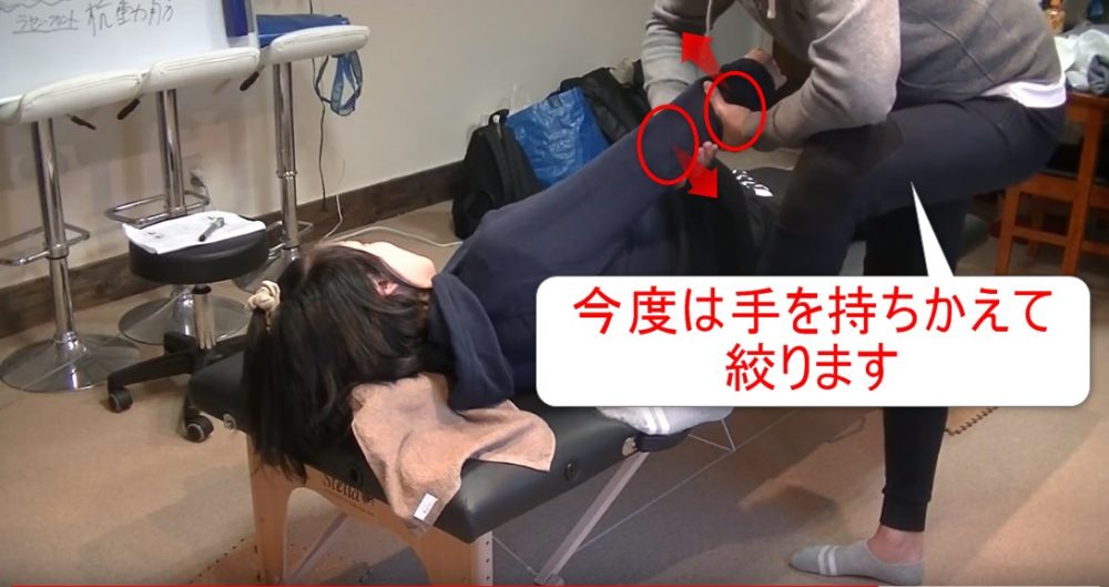 腕絞りは、ぎゅっと掴みます。