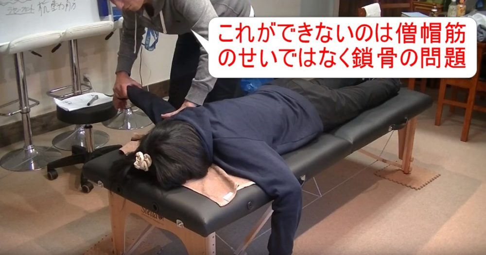 これができないのは、僧帽筋のせいじゃなくて鎖骨の問題です。