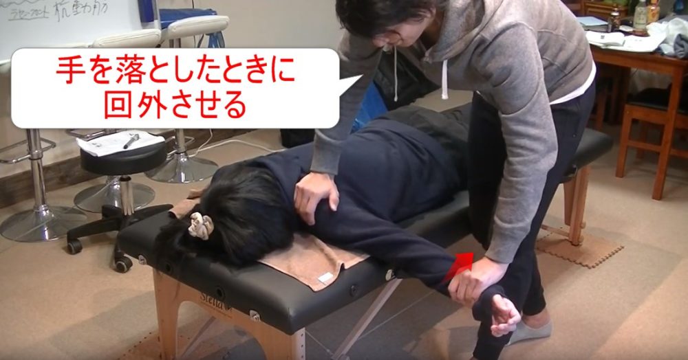 手を持って、手を回外にします。